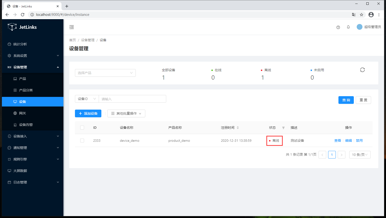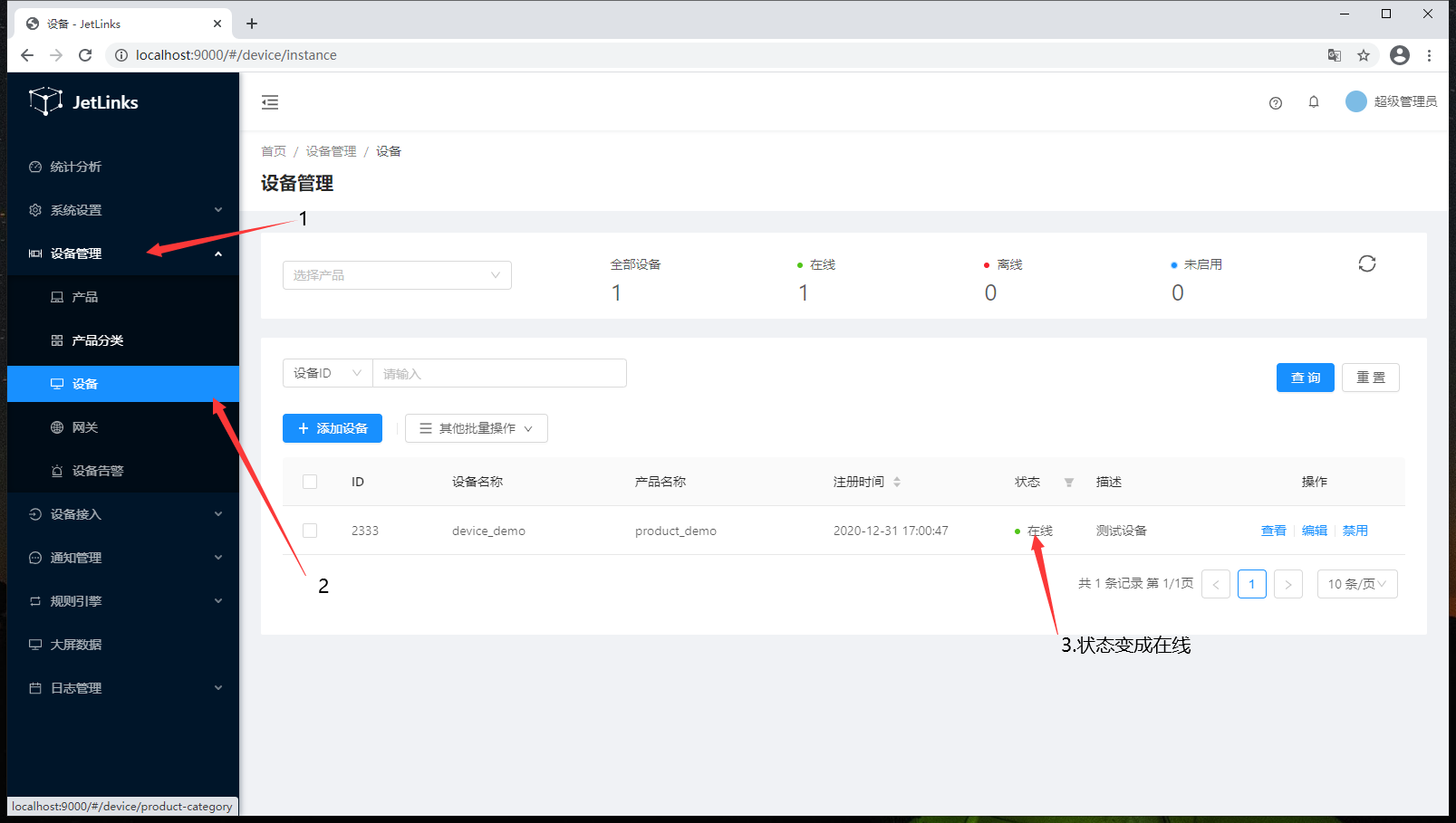 如果回到系统,设备还是显示的在线,请刷新一下页面