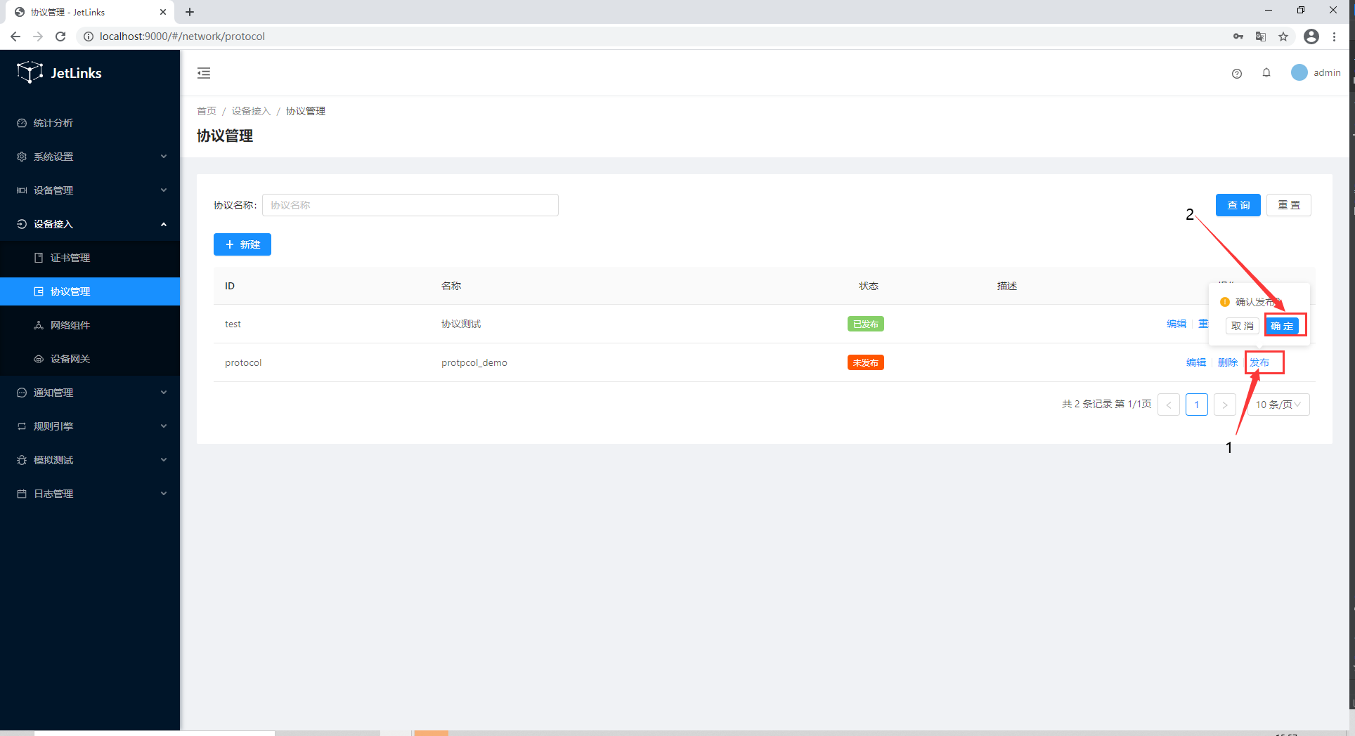 1.进入系统,点击设备接入 → 网络组件 → 新增组件