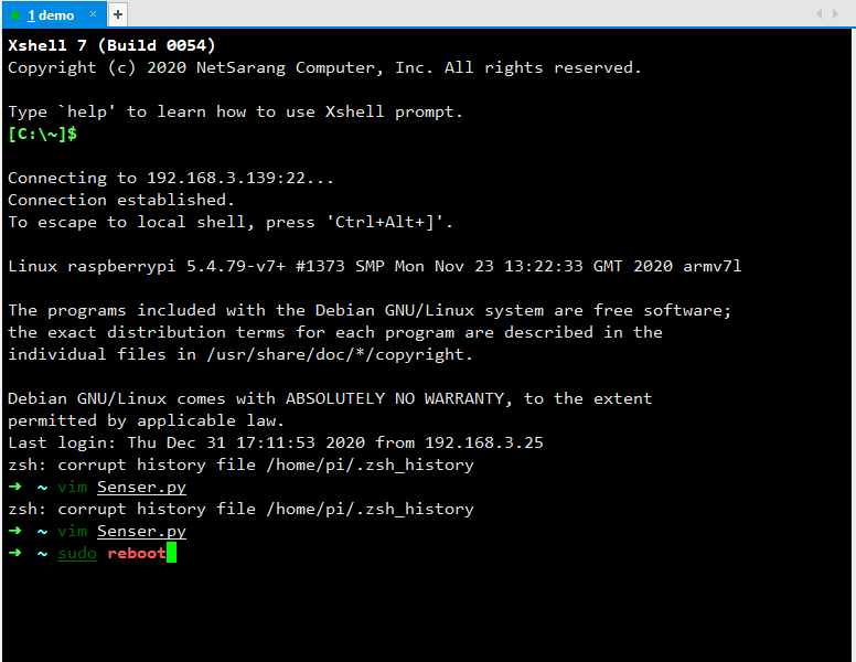 3.连接设备成功后,执行命令 : $vim Senser.py
