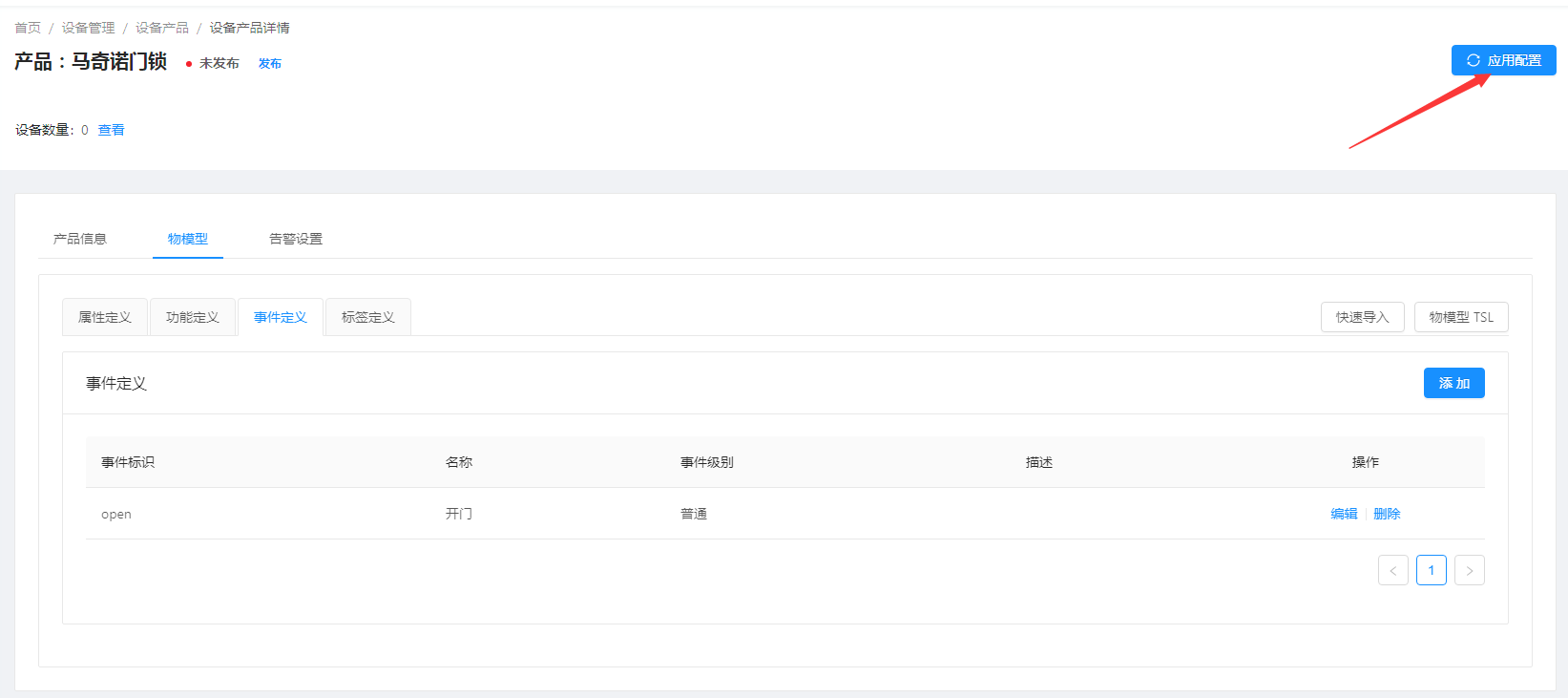 新建产品启用需要发布,此处直接点击应用配置按钮,则会自动发布该产品。